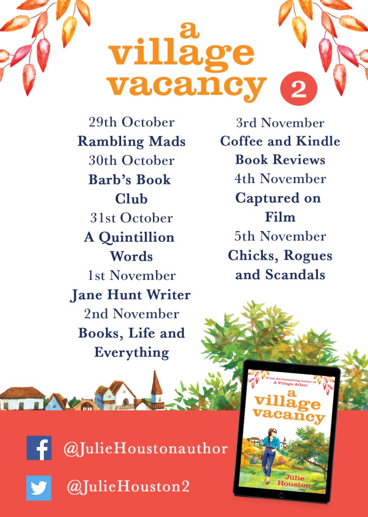 A huge thanks to the author of the book, Julie Houston, and Aria Fiction for my copy! You can purchase your own copy of A Village Vacancy on Amazon now, available on Kindle and in paperback. Make sure you’re following the author over on Facebook, Twitter and Instagram for more updates!